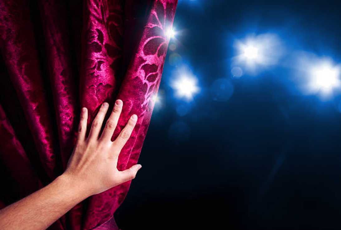 Színház. A színpadon félhomály, épp változik a szín.
